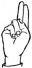 На ћирилици написано КОСТАДИН КЕЦОЈЕВИЋ састоји се из 17 слова [?]. Исписано ћириличном једноручном азбуком за глувонеме: